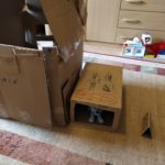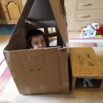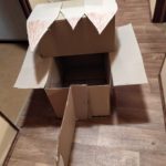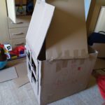 My našli velikou krabici, ze které vznikl dům. Postupně přibyla psí bouda a nakonec okap, který je zároveň kuličkodráhou. Z velké krabice může být také raketa.