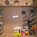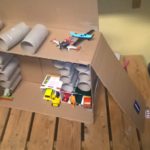 Ze středně velkých krabic se dobře vyrábějí různé garáže – když vlepíte ruličky od toaletního papíru, máte bezvadný parkovací dům.