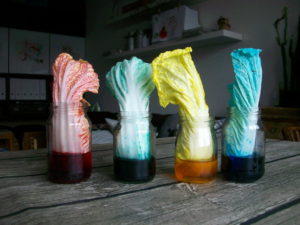 Připravte si nádobu s vodou a obarvěte barvivem vodu. (cca 250ml vody) Barviva je potřeba tolik, aby mělo použité množství vody jasnou barvu. (3-8 kapiček) Poté vložte vámi vybranou rostlinu do nádoby a dejte jí čas. Každá rostlinka vstřebává vodu různě rychle. Můžeš tedy vyzkoušet různé rostliny – sledovat a zapsat, jak dlouho trvá, než barvu nabude. Sledujte, jak se bude rostlině dařit a jakou bude mít barvu!