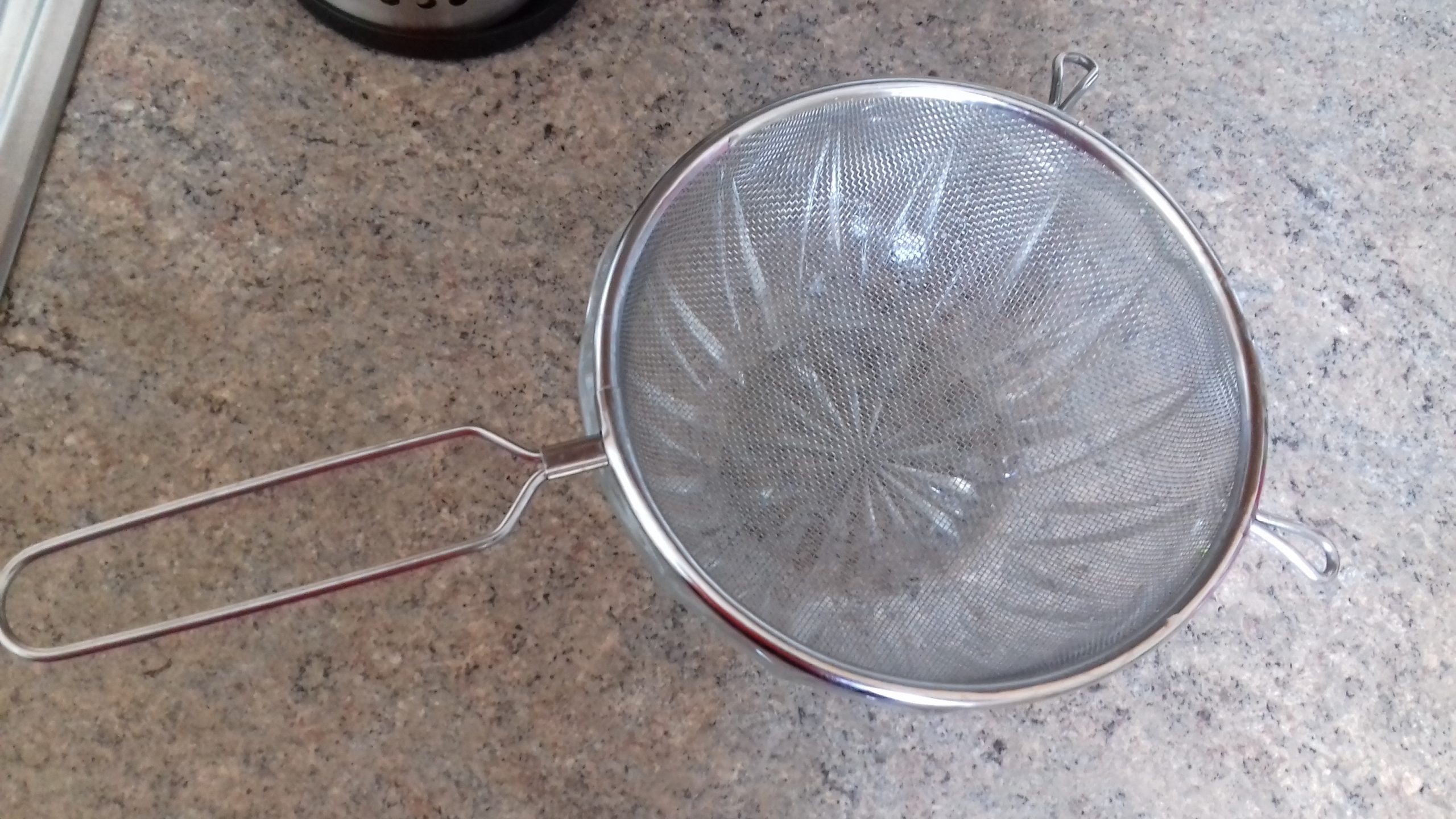 Vezmeš si mísu a dáš do ní sítko. Navrch položíš čistou utěrku. Celé to položíš na kuchyňskou váhu a tu zapneš, aby tam bylo napsáno: 0 gramů.